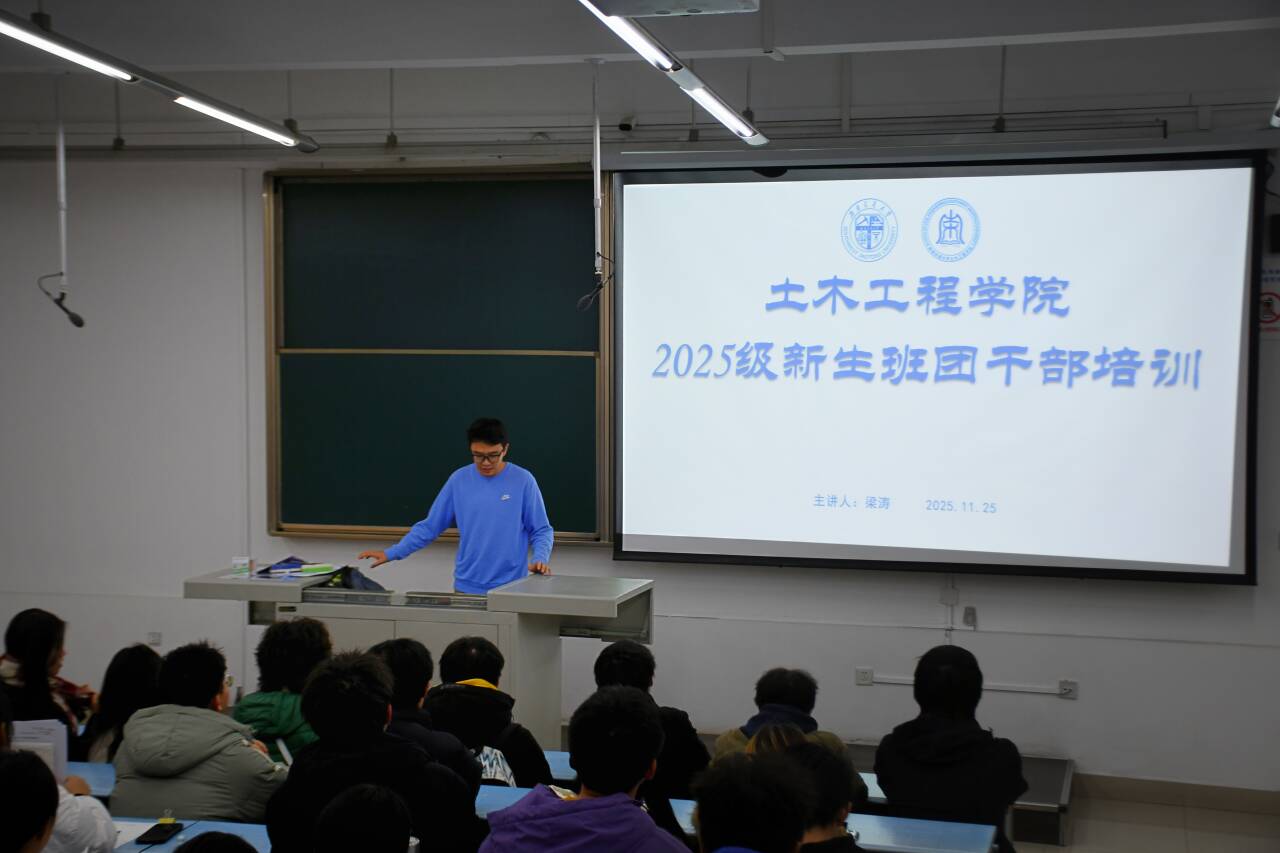土木工程学院青年讲师团成员、2025级辅导员杨颖钊老师,为全体班团干部开展“团的十九大精神”专题团课。土木工程学院青年讲师团成员、2025级辅导员梁涛老师,面向新生班团干部开展“新生班干部理论素养和能力素质提升”专题培训;土木工程学院青年讲师团成员、2025级辅导员郭哲维老师,面向新生团学组织干事开展“新生团学组织干事能力素质提升”专题培训;土木工程学院青年讲师团成员、2025级辅导员彭政涛老师,面向初级班全体学员带来“党的二十大精神、习近平新时代中国特色社会主义思想及爱国荣校”专题讲座;