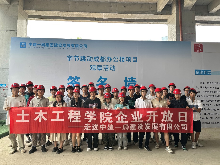 2023年6月8日14时到19时,中建一局集团建设发展有限公司面向bat365中文官方网站土木2022-10班同学开展了“走进一局发展”项目观摩活动,本次活动由土木2022-10班企业生涯导师陆婷宇和2022级辅导员雷晓鸣共同带队。