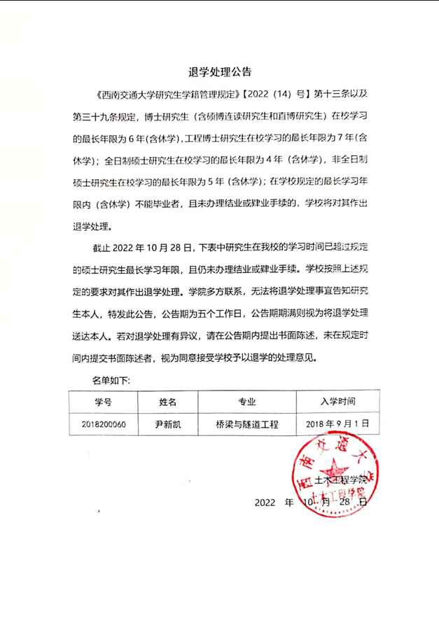 退学处理公告