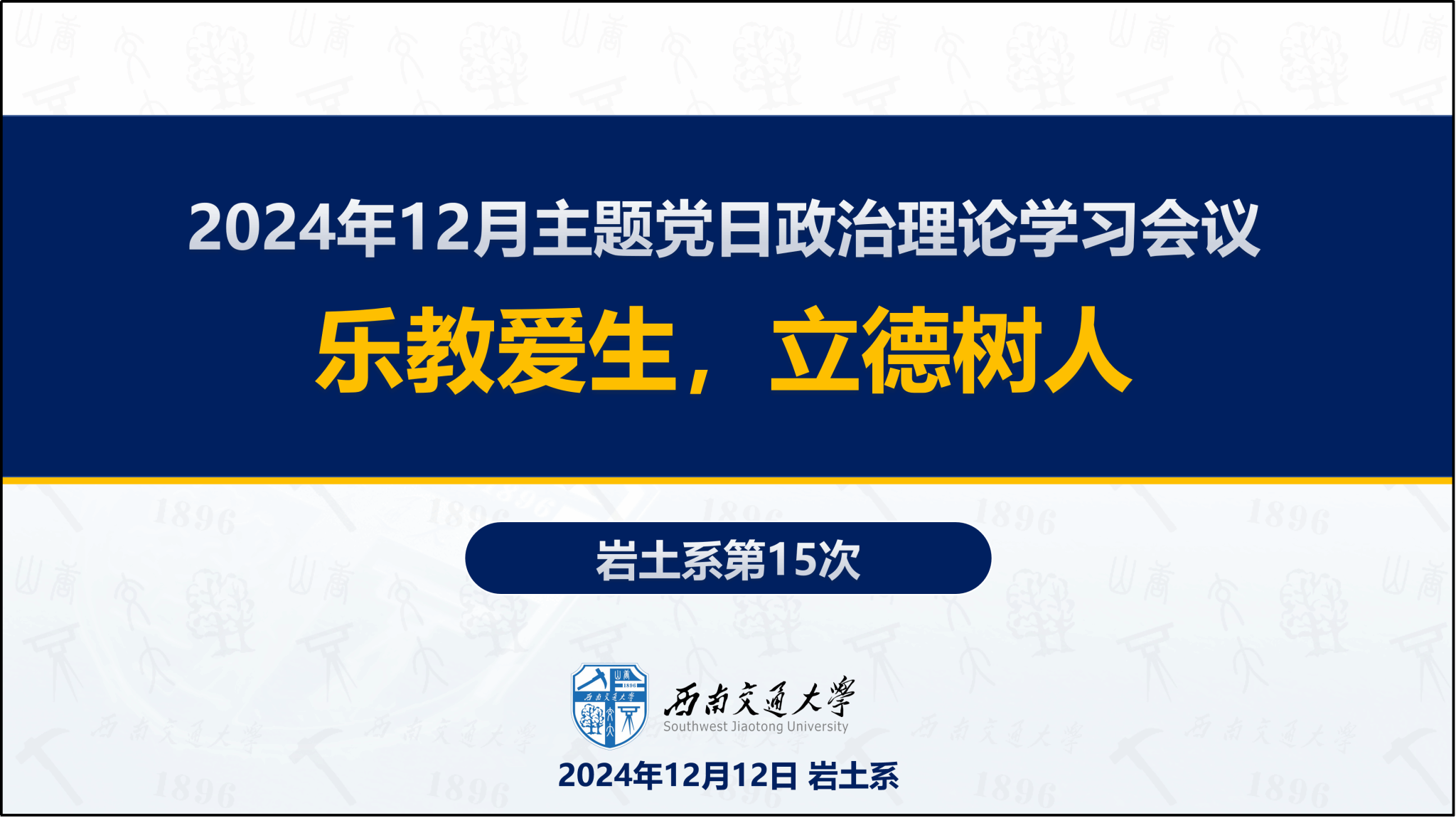 2024年12月12日,岩土工程系在土木馆1235室开展“乐教爱生、立德树人”主题党日政治理论学习活动,土木工程学院党委书记郑江出席,活动由岩土工程系教工党支部书记张迎宾教授主持。