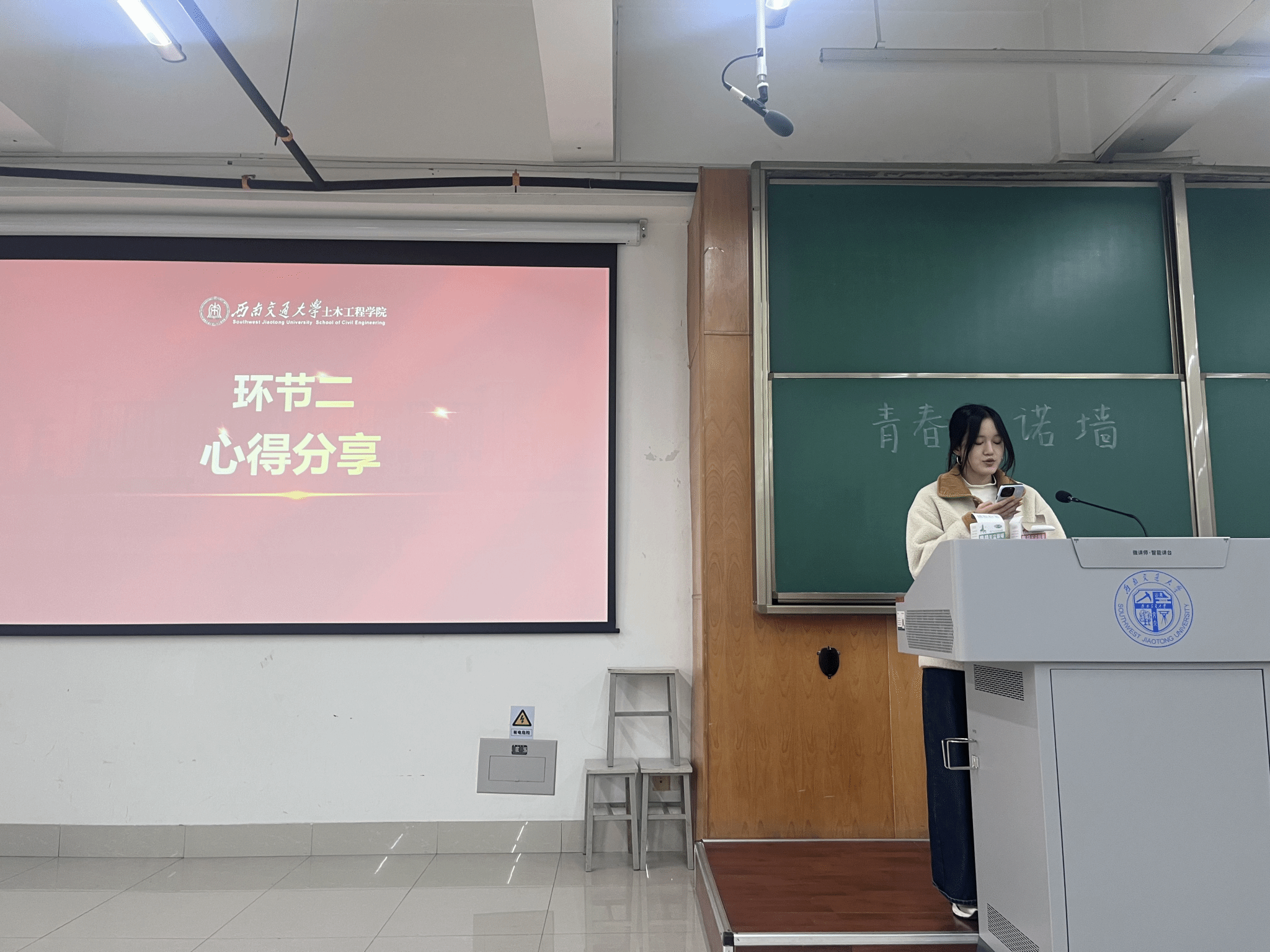 活动尾声的互动环节将氛围推向高潮:支部成员手持彩色便利贴,写下“顺利通过期末考”“顺利完成课程设计”“规律作息睡眠”“坚持运动锻炼”等可落地的践行目标,亲手贴至“青春许诺墙”,多彩便签组成了青年党员的“成长图谱”。