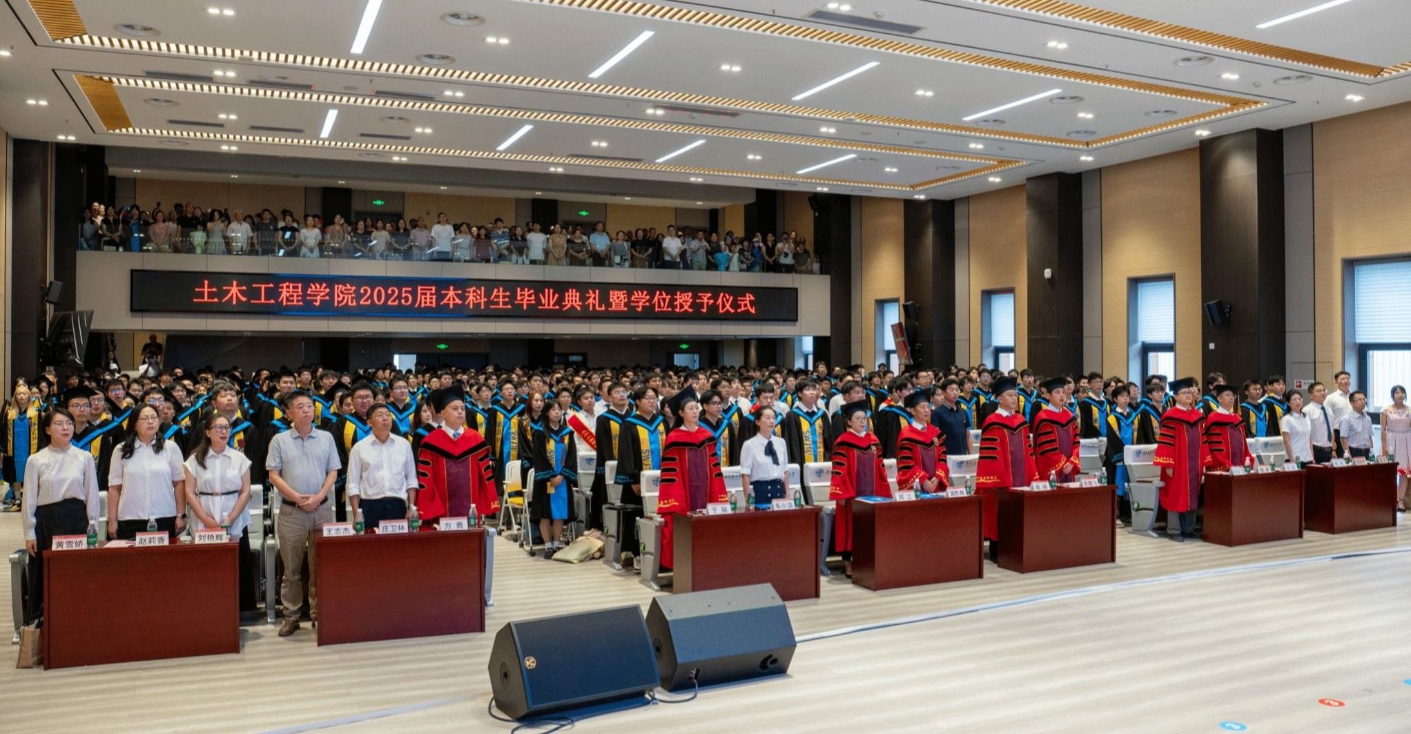 徐腾飞副院长宣读《土木工程学院2025届本科生授位决定》。学院领导为全体毕业生授学位礼,拨穗正冠,定格荣耀,启程新途。