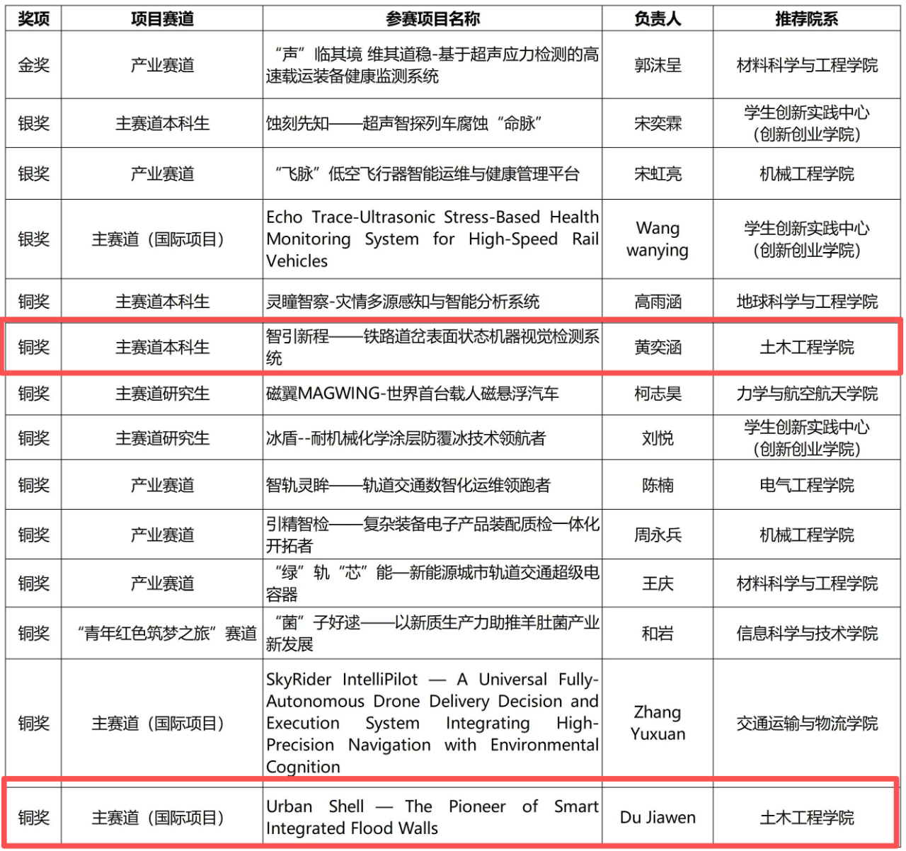 10月13日至15日,中国国际大学生创新大赛(2025)全国总决赛在郑州大学举行。经过激烈角逐,土木工程学院参赛师生一共获得两枚铜奖的好成绩。