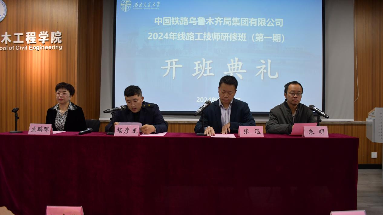 11月5日上午,中国铁路乌鲁木齐局集团有限公司2024年线路工技师研修班开班典礼在西南交通大学九里校区土木馆1234教室顺利举行。乌鲁木齐工务段杨彦龙,土木工程学院培训中心副主任张迅、教学主管孟鹏晖、业务主管朱明出席了本次开班典礼。开班典礼由朱明老师主持,bat365中文官方网站培训中心全体教师及线路工技师研修班全体学员参加了开班典礼。