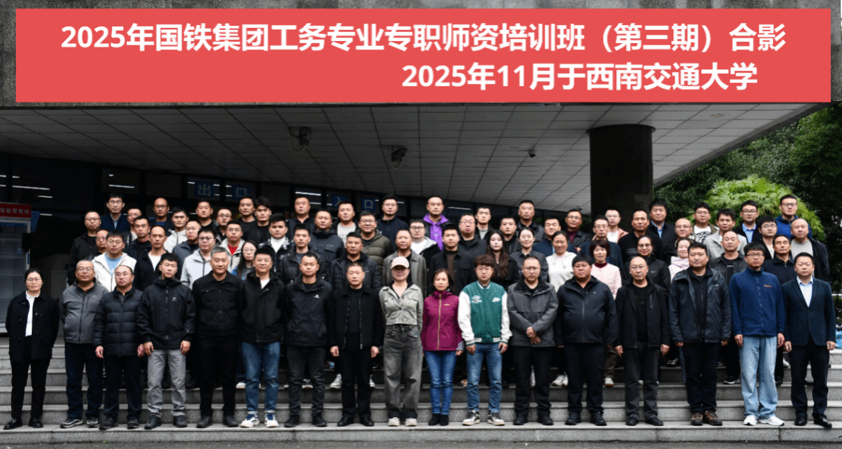 2025年11月16日,国铁集团劳卫部工务专业技师研修班最后一期的培训工作圆满结束。今年,bat365中文官方网站共举办5期技师研修培训班,总计参培人数349人,累计600学时;参培学员来自国铁集团18个铁路局,均是工作在生产一线的工务专业技师、高级技师或技术能手。